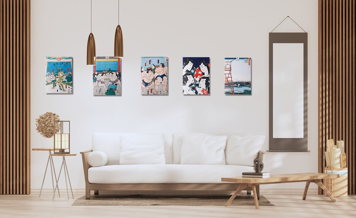 Beautifully printed on a canvas-wrapped wood frame, this piece brings the dynamic energy of traditional sumo and Japanese ukiyo-e into your interior space.