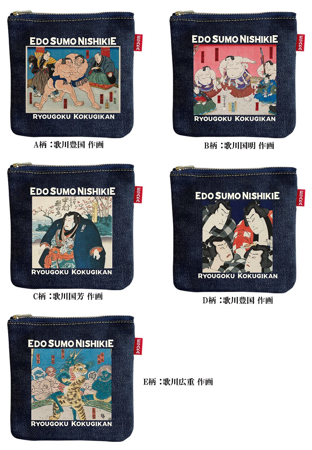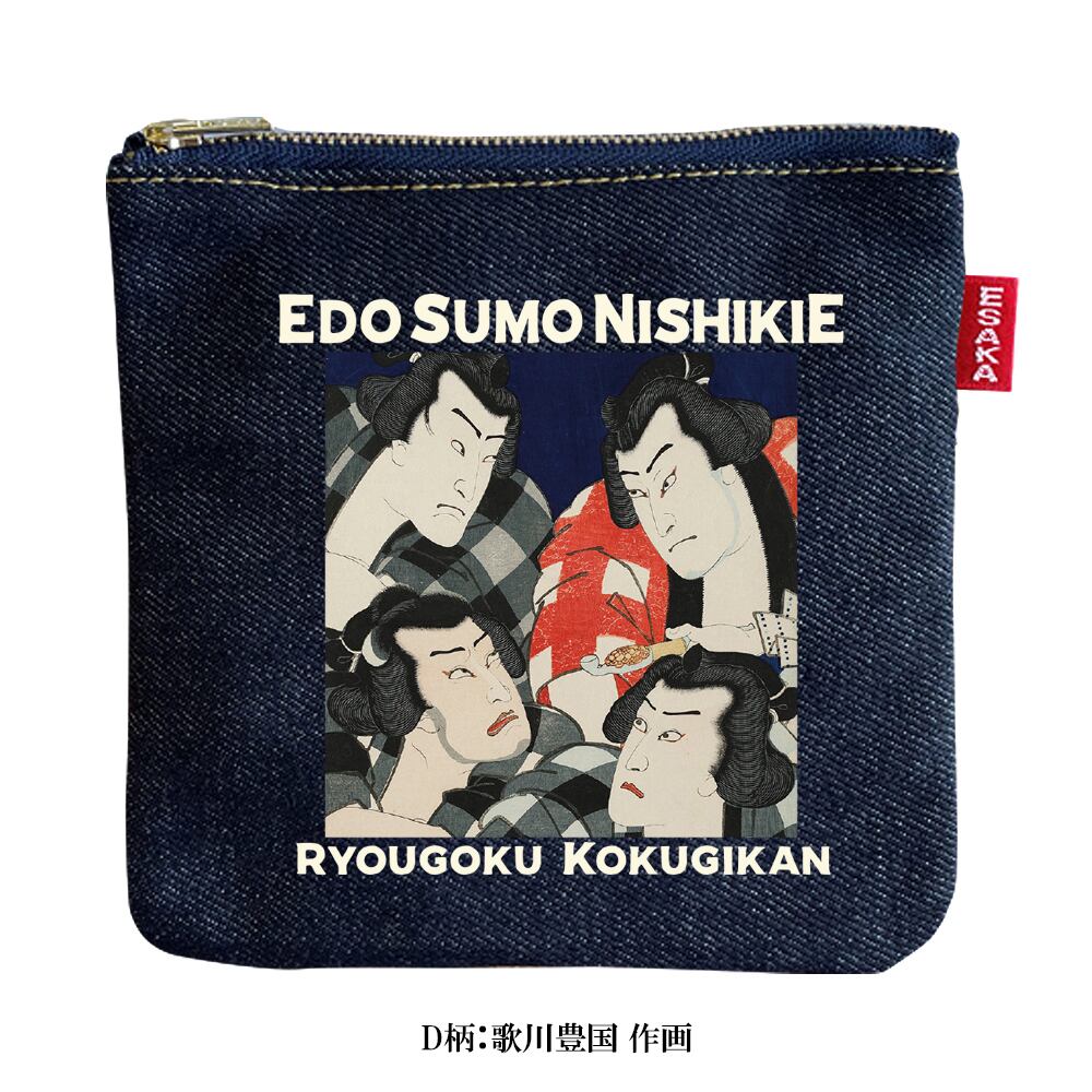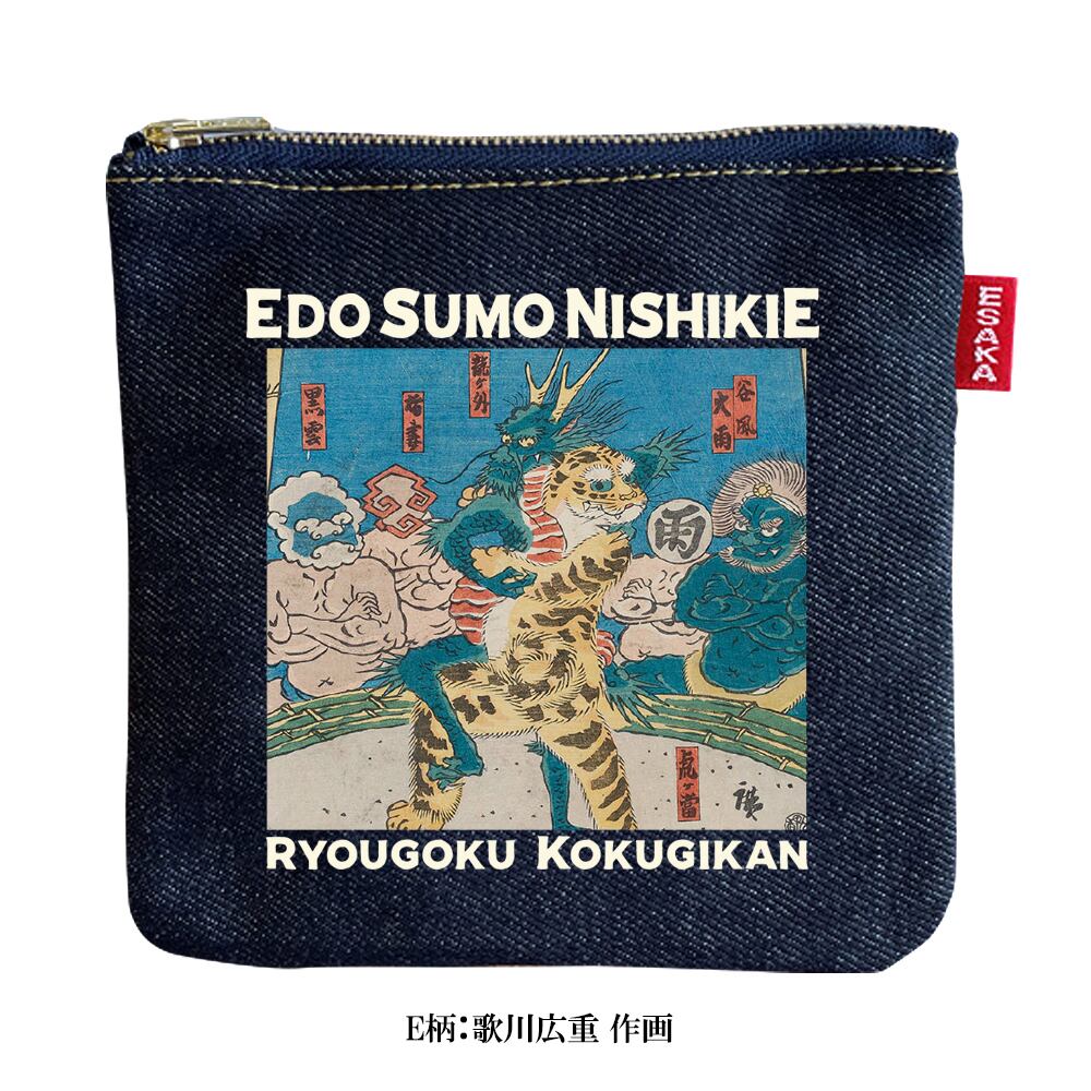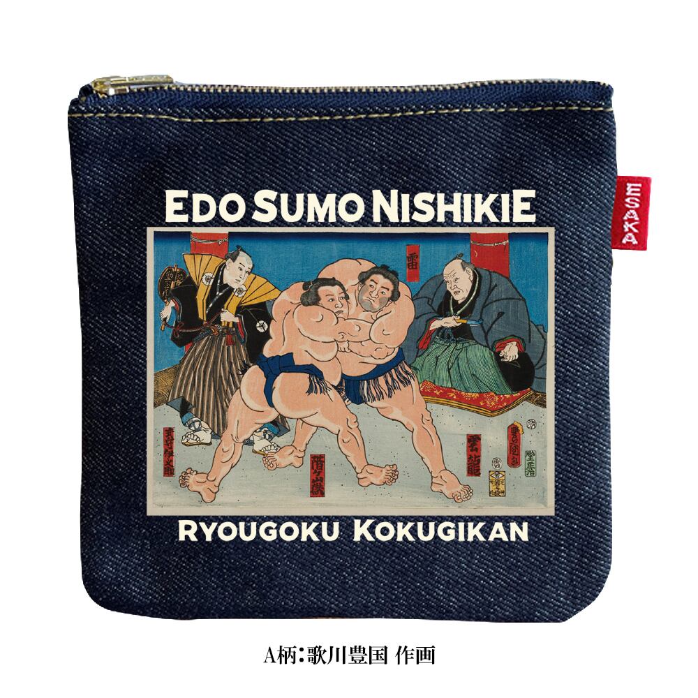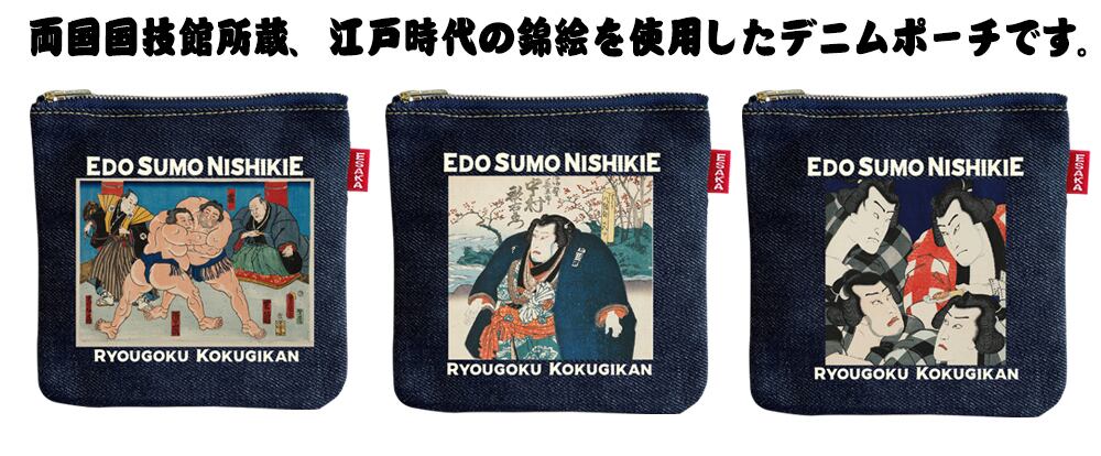 大阪・江坂の自社工房にてデニムアイテムの生産・加工を行う「江坂ジーンズ工業」より、両国国技館所蔵の江戸錦絵を使用したデニムポーチが登場です。